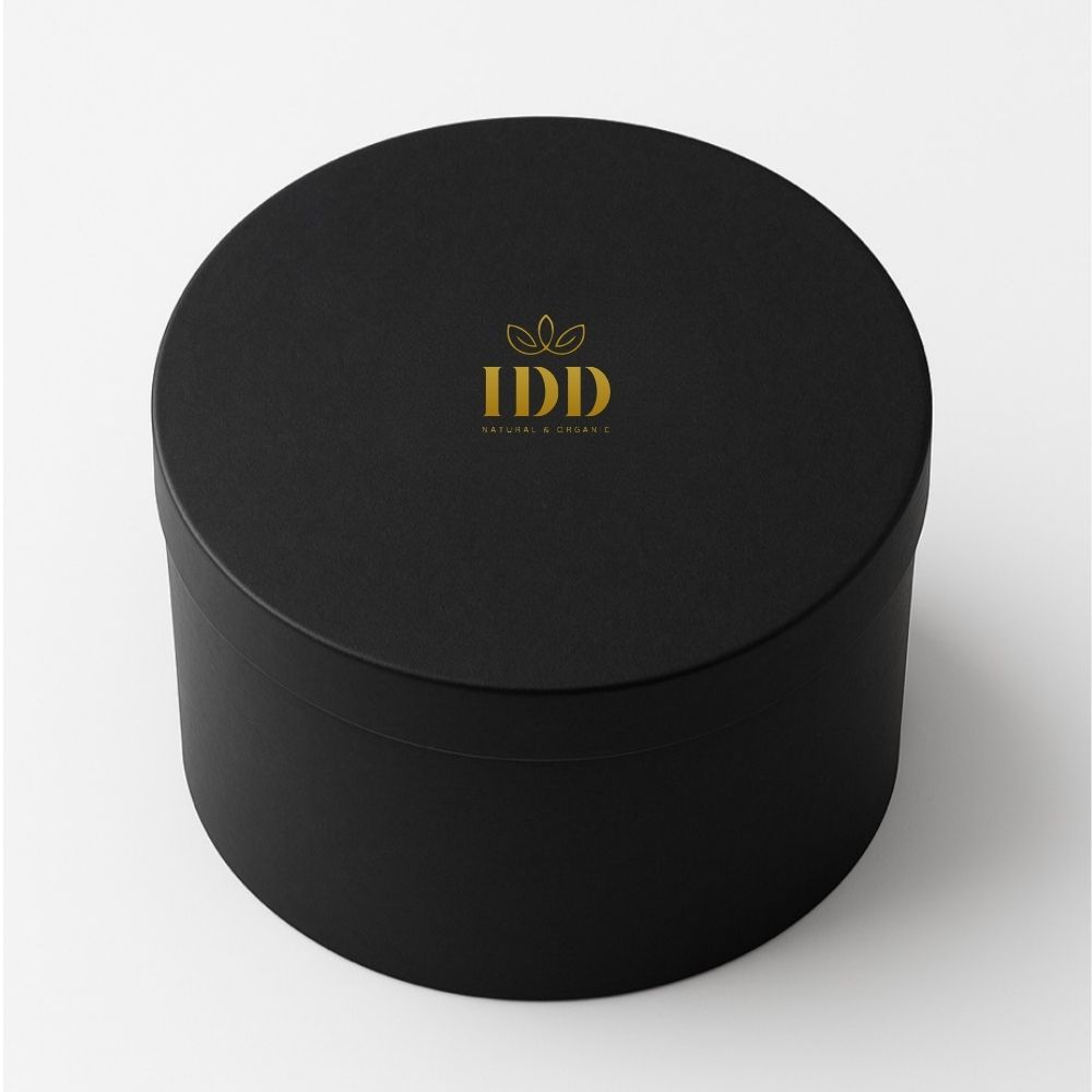 Return To ShopA luxurious matte black round box designed with elegance and simplicity. Featuring the IDD Natural & Organic logo embossed in gold for a touch of sophistication.